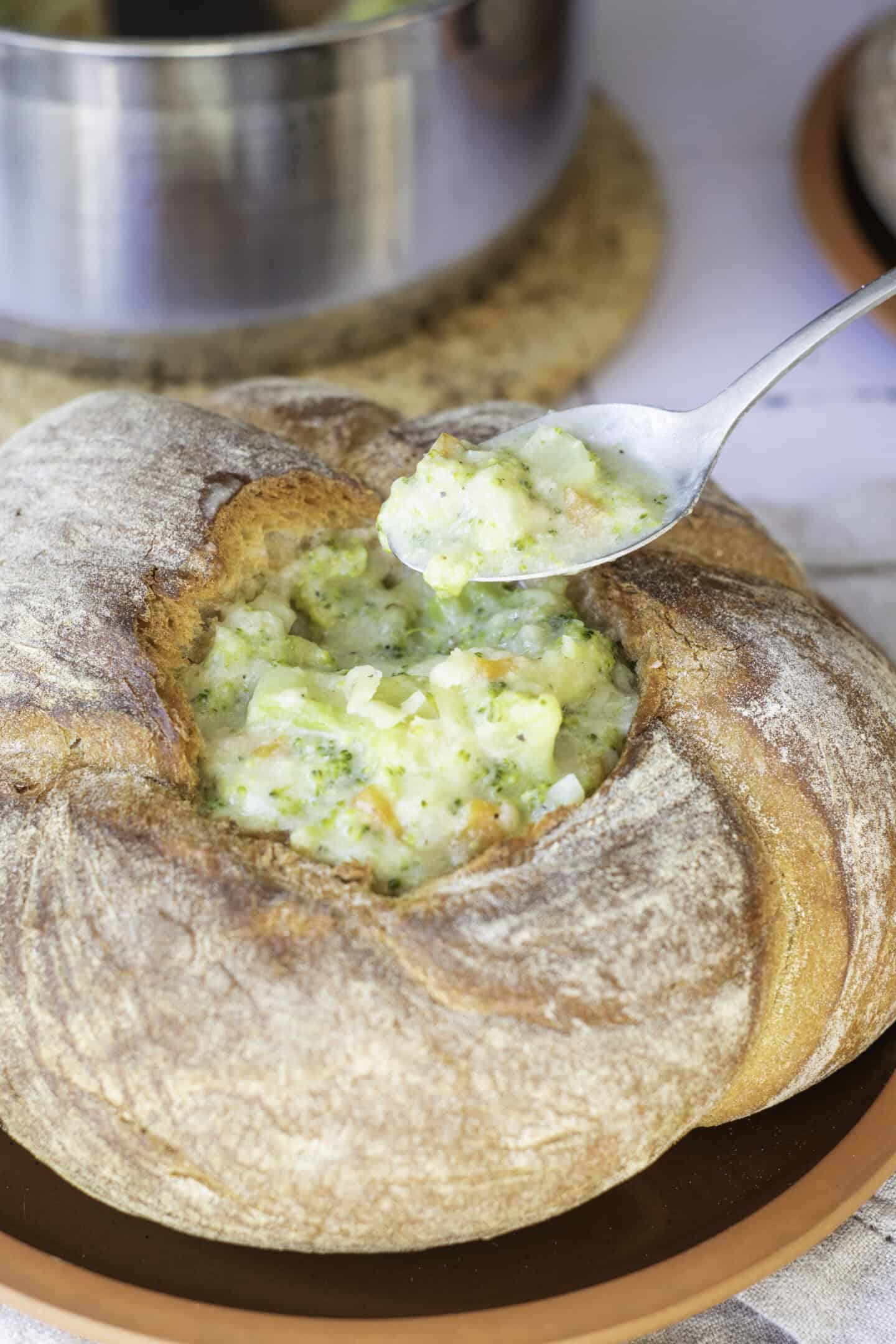 Broccoli Cheddar Soup in a Sourdough Bread Bowl