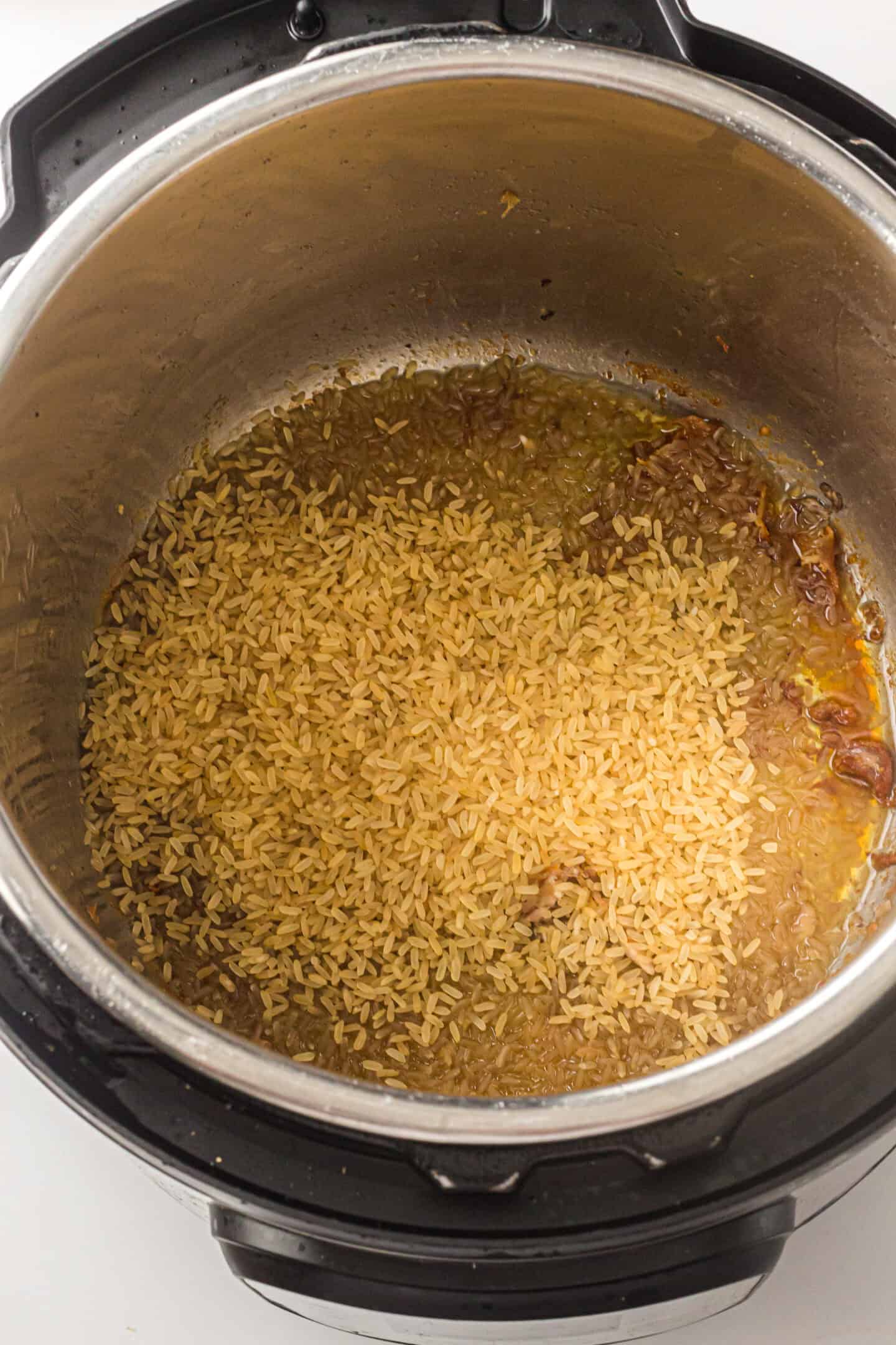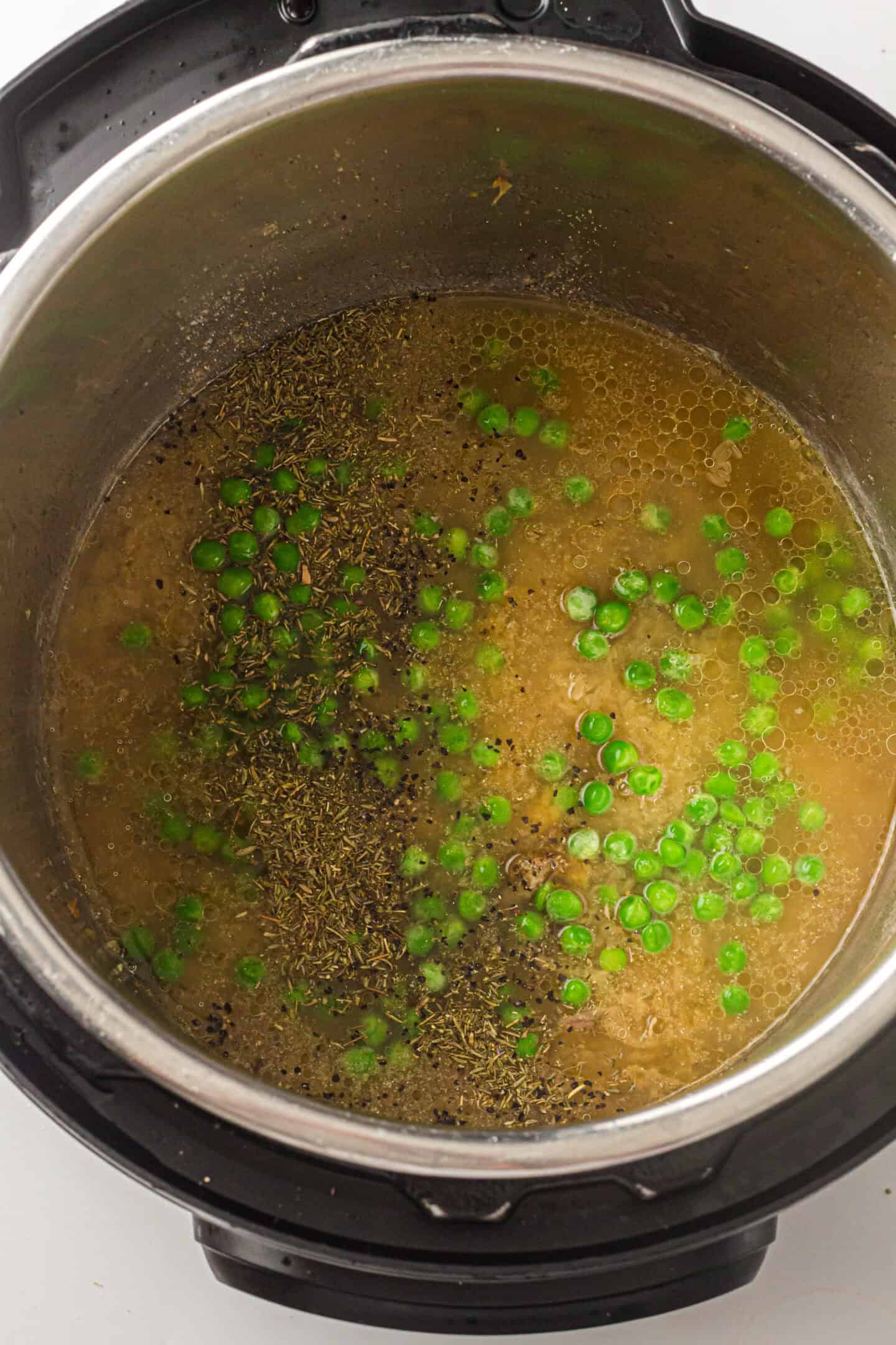 Step 2: Press Cancel. Add rinsed rice, broth or water, salt, pepper, garlic powder, onion powder, and thyme if using. Stir gently to combine.