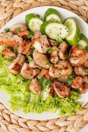 Chicken – Thighs stay juicier, but breasts work well if sliced evenly.