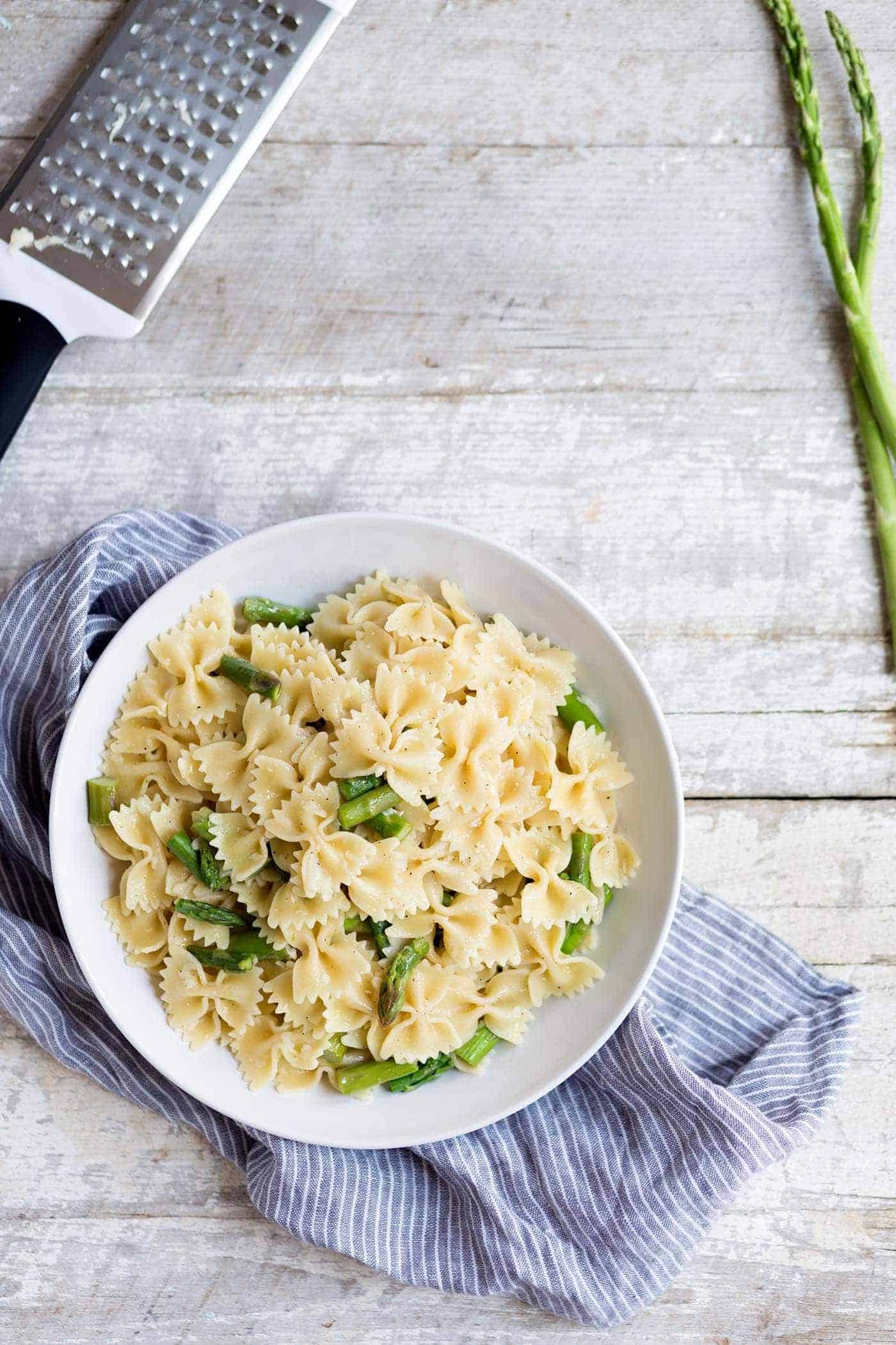 This pasta salad with asparagus, Asiago and lemon highlights fresh asparagus and tangy lemon for a truly spring-forward salad. The Asiago adds a rich, savory finish.