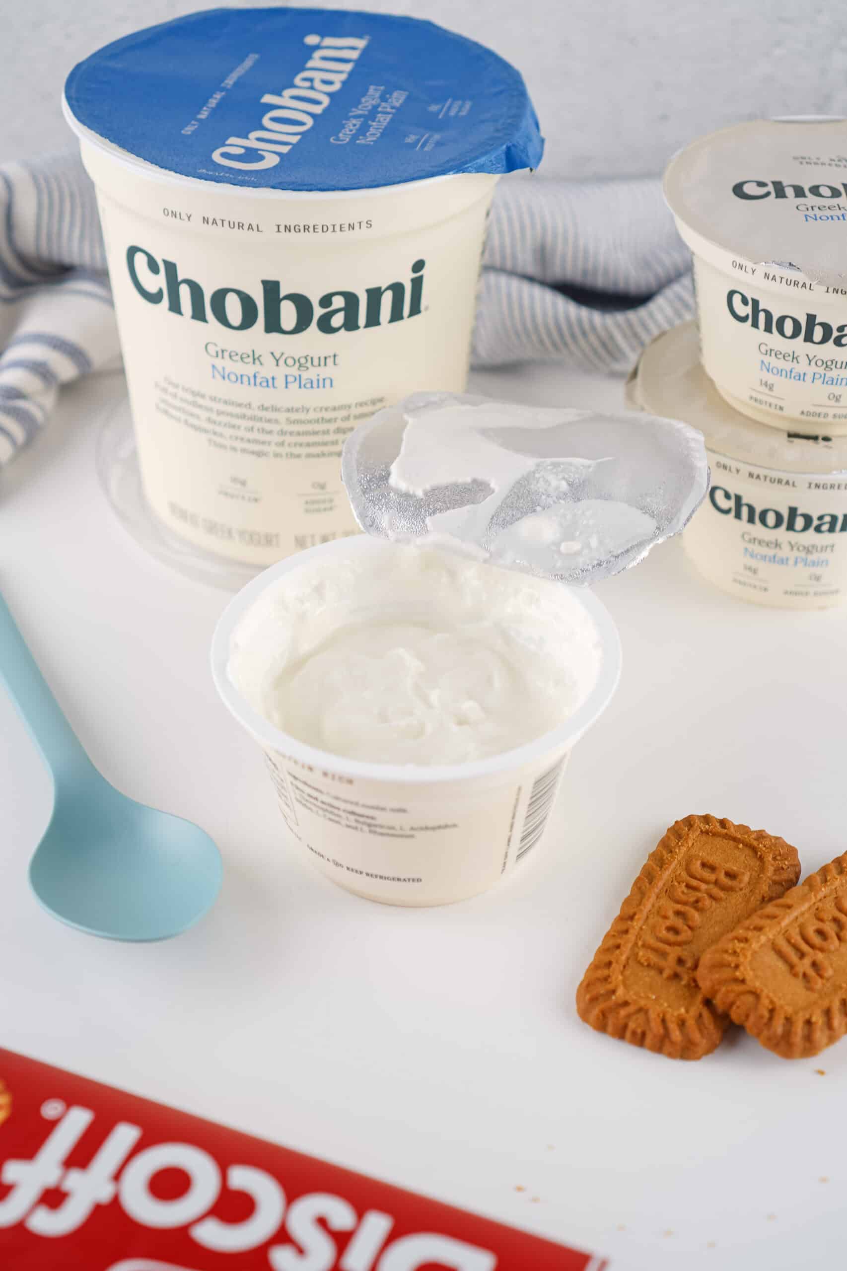Greek Yogurt – Use thick plain Greek yogurt for the best texture. If there’s liquid (whey) on top, stir it in before adding the cookies. Full-fat, 2%, or nonfat all work—just expect slight texture differences.